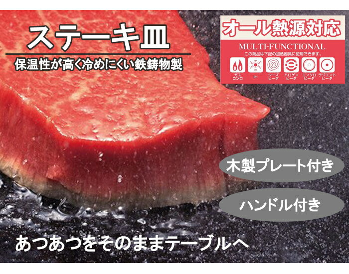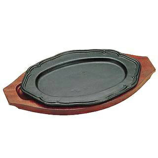 送料無料 ステーキ皿 [鉄鋳物]IHにも対応! 小判ステーキ皿 2枚組セット(敷板、専用ハンドル付き)【RCP】【キャッシュレス 還元 対象店】【CP】