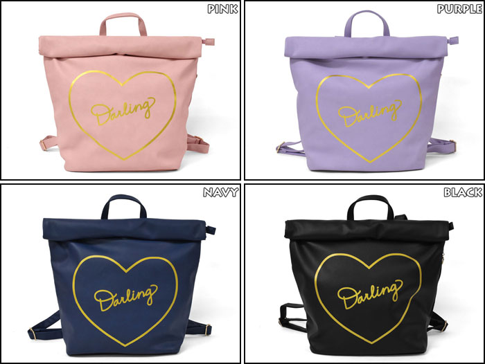 ■ フロント部分のハートや英字のゴールドプリント、ハート型のジップ持ち手など魅力いっぱい♪