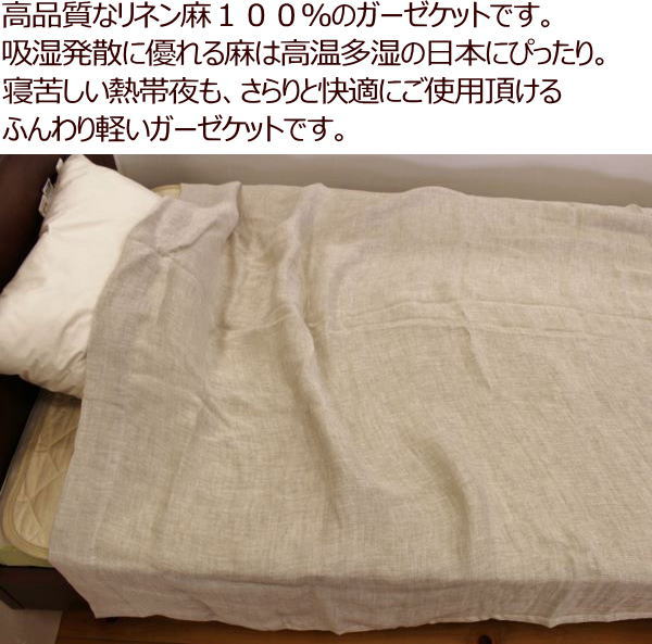 本麻(リネン麻)100%のガーゼケットです 麻は、天然素材の中でも、最も涼しい素材です。
