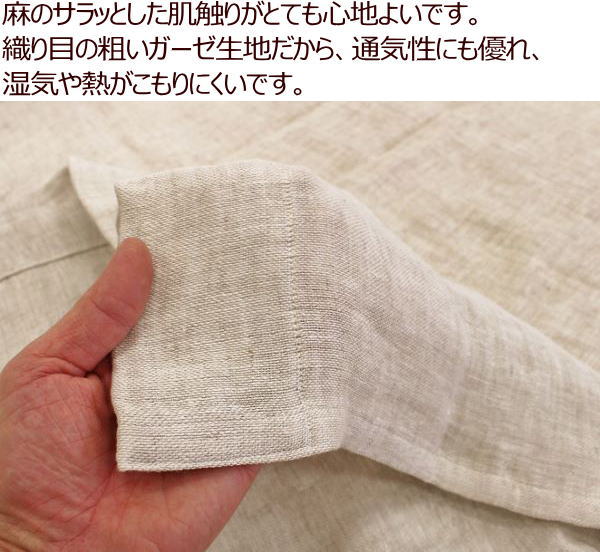 麻には、リネン麻と、ラミー麻がありますが、 当商品は、肌触りに優れ、高級とされる リネン麻を100%使用しています。