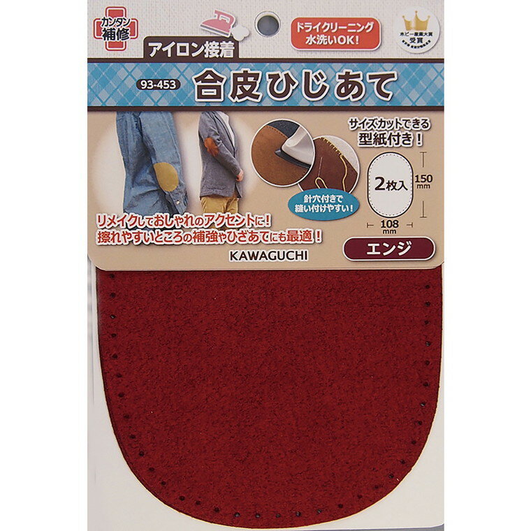 合皮 ひじあて エンジ (1セット 2枚入) 【 93-453 】 / ひざあて リメイク 簡単 裁縫 補強 補修 修理 eco エコ ハンドメイド KAWAGUCHI【ゆうパケット対応】