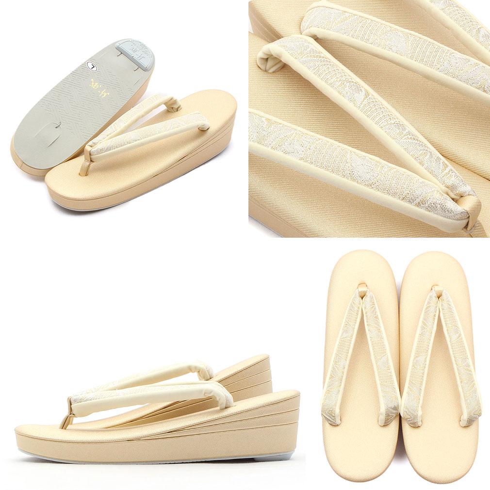 草履台は3枚芯のたたき入り台で、かかと高さは5.5cmと程よいヒール高で、 底面には「紗織」オリジナルの紗彩形の滑り止めが施された、ソフトで歩きやすさ抜群の逸品。