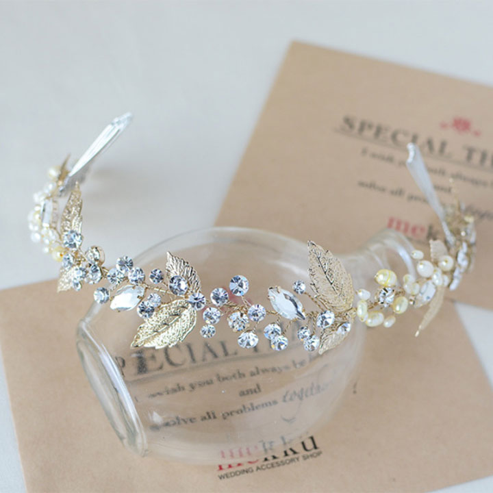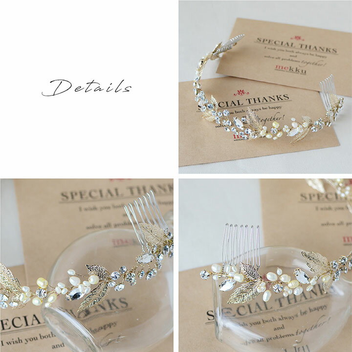 key word結婚式 ブライダルアクセサリー 花嫁 ウェディング 髪飾り 挙式 2次会 発表会 おしゃれ【ゼクシィ掲載】淡水パールとビジューの小枝カチューシャ・ヘッドドレス/ゴールド[ha151]バックカチューシャにもなるリーフ髪飾り結婚式 ウェディング ボタニカル ブライダル ナチュラル 挙式 アクセサリー//淡水パールを使用したナチュラルなヘッドドレス//リーフモチーフを象った、輝くゴールドカラーのヘッドドレスです。
